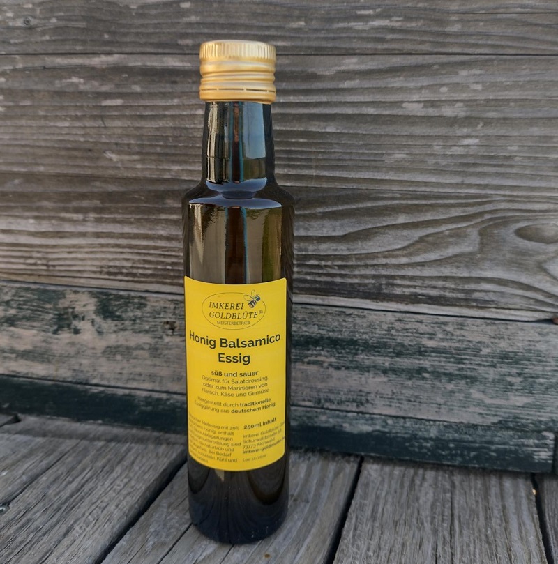 Meiner Meinung nach kann dies nur Honigessig mit deutschen Honig sein. Schließlich ist die Deutsche Honigverordnung die strengste der Welt und die Grundlage für den qualitativ sehr hohen Anspruch des deutschen Honiges.