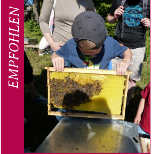 Nach einer Einweisung entnehmen Sie zusammen mit Ihren Kindern eine Honigwabe aus einem Bienenvolk. Anschließend wird dieser zusammen geschleudert und ins Glas abgefüllt.